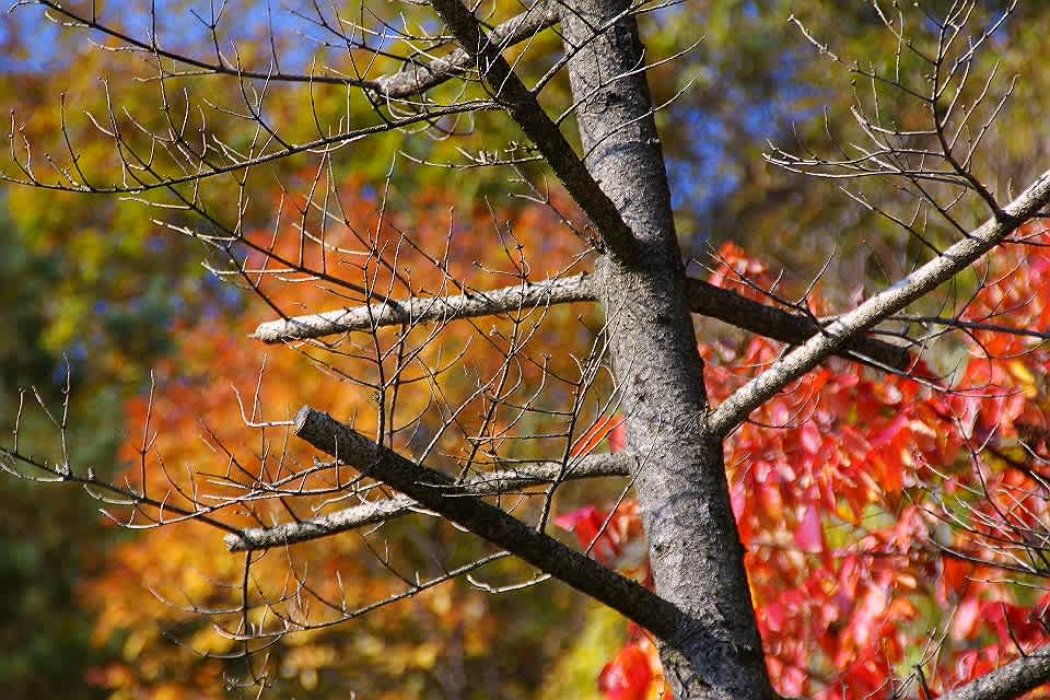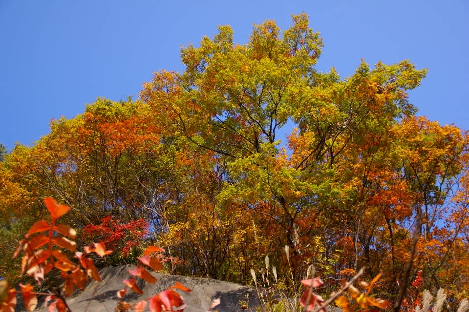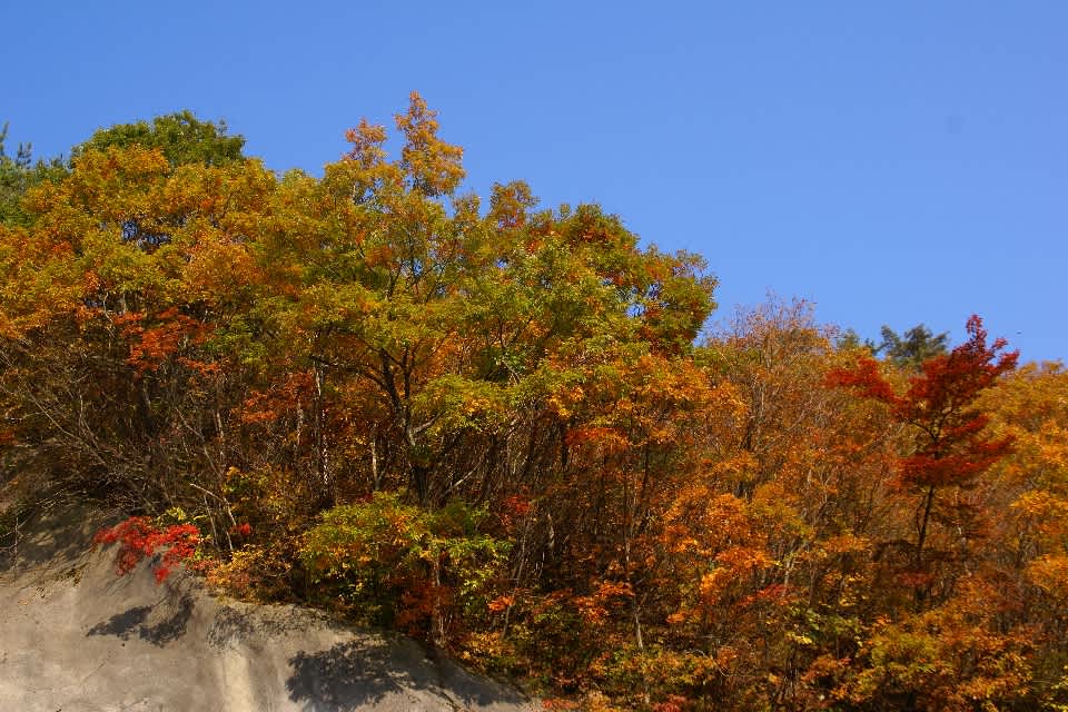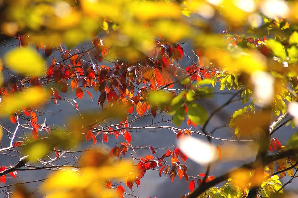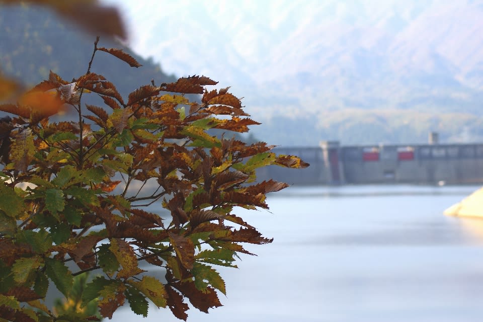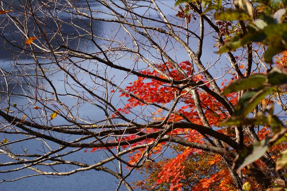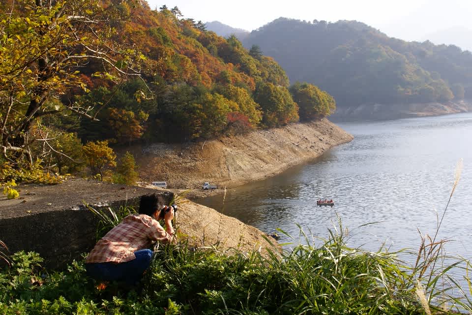 内の倉ダムは放水したらしく水が無く、水面に映る紅葉は写せませんでした。