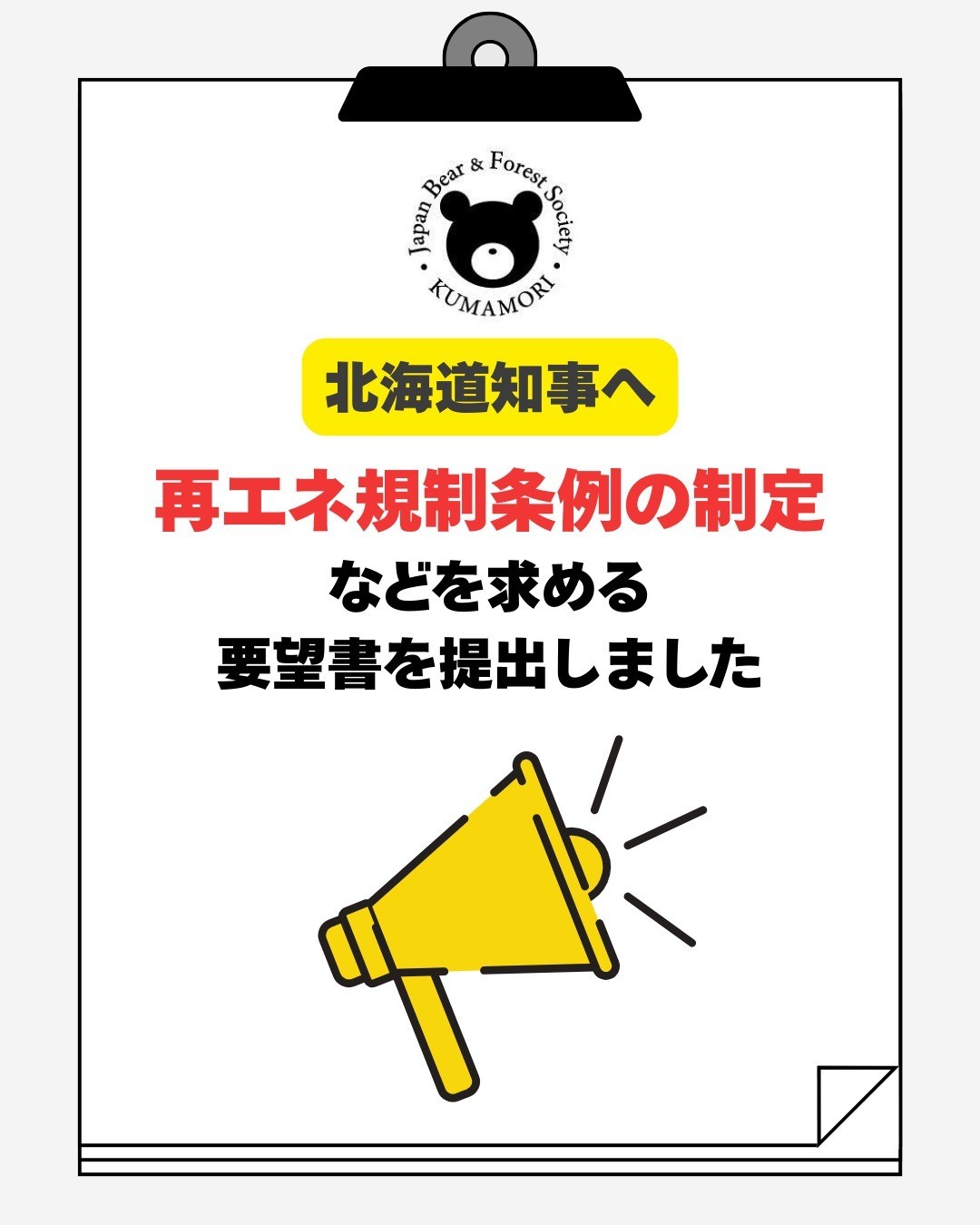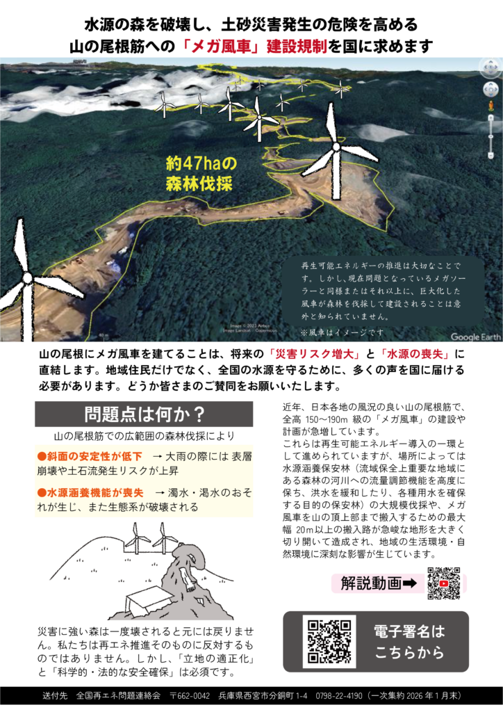 送付先:全国再エネ問題連絡会(日本熊森協会も事務局・共同代表を担っています)